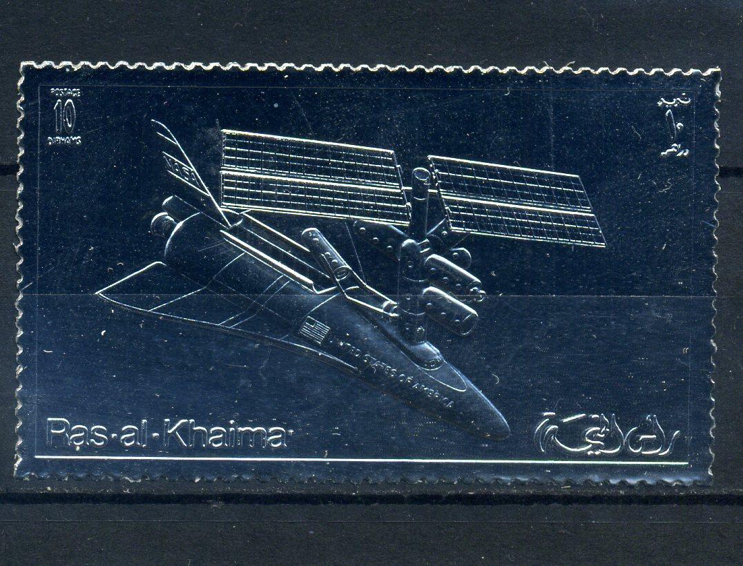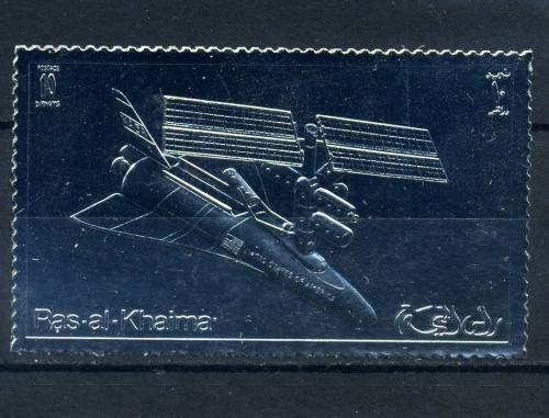 Почтовые марки. Рас-эль-Хайма. 1972 г. № А758. Космос. Скайлэб. Фольга, серебро. (Mi : 16.00 Euro).