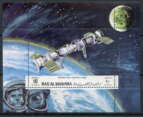 Почтовые марки. Рас-эль-Хайма. 1970. Космос. Союз-4. Союз-5. № Бл. D95А (Mi: 15.00 Euro).