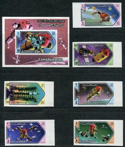 Почтовые марки. Рас-эль-Хайма 1971г. Космос. №547в-552в. Блок №101в. Беззуб.
