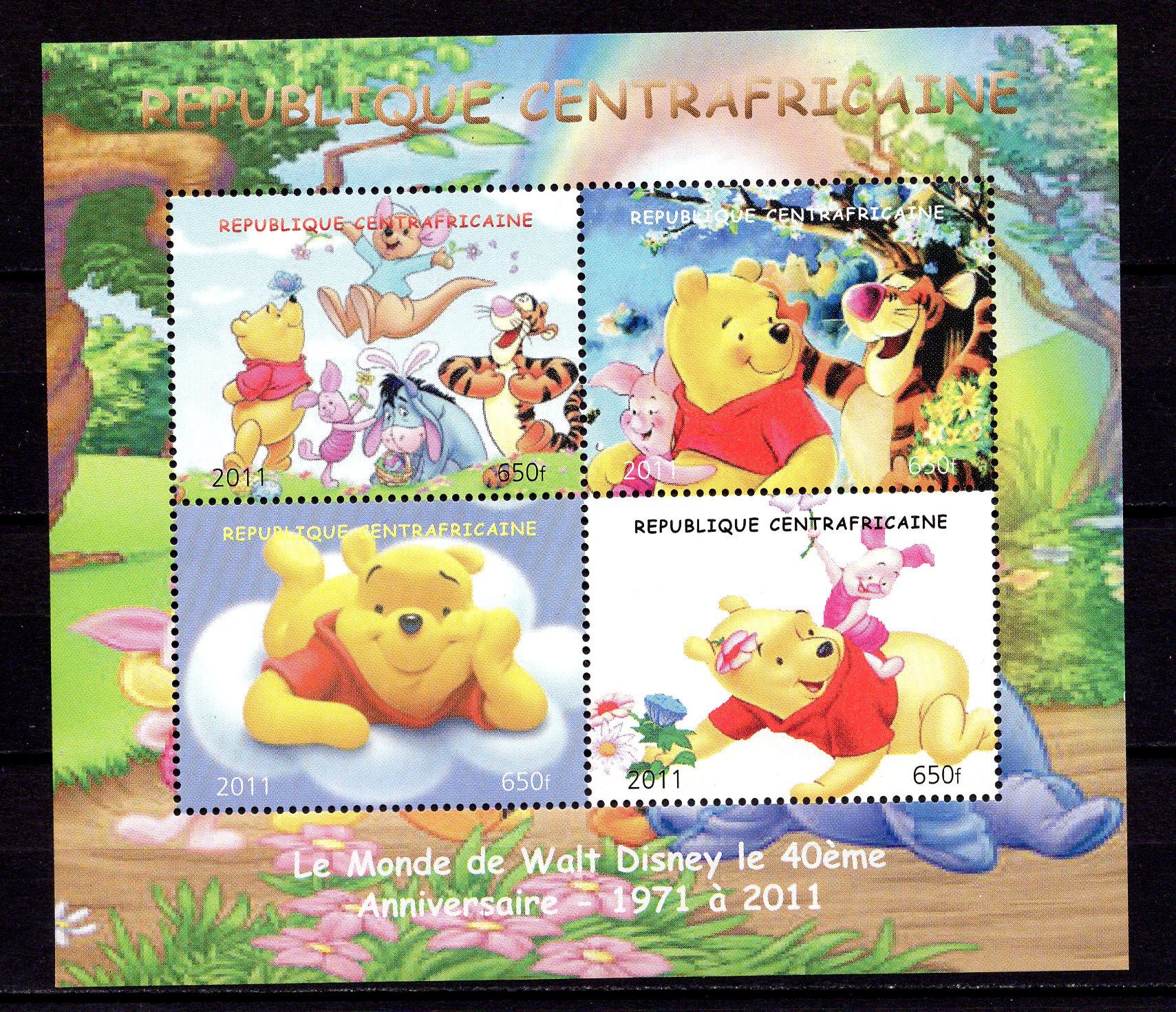 Почтовые марки. ЦАР, 2011 г. Некатал. Мультфильмы.