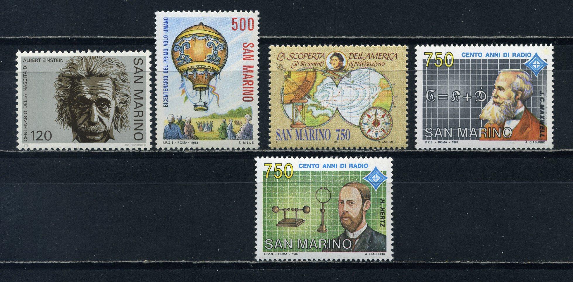 Почтовые марки. Сан-Марино. 1973-1992г. Эйнштейн. Авиация. Астрономия. Сборный лот. №1174.1284 и т.д.