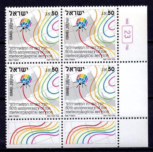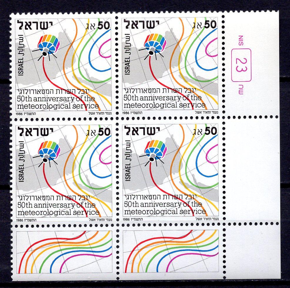 Почтовые марки. Израиль. 1986 г. Космос. Метеорология. КБ. №1050