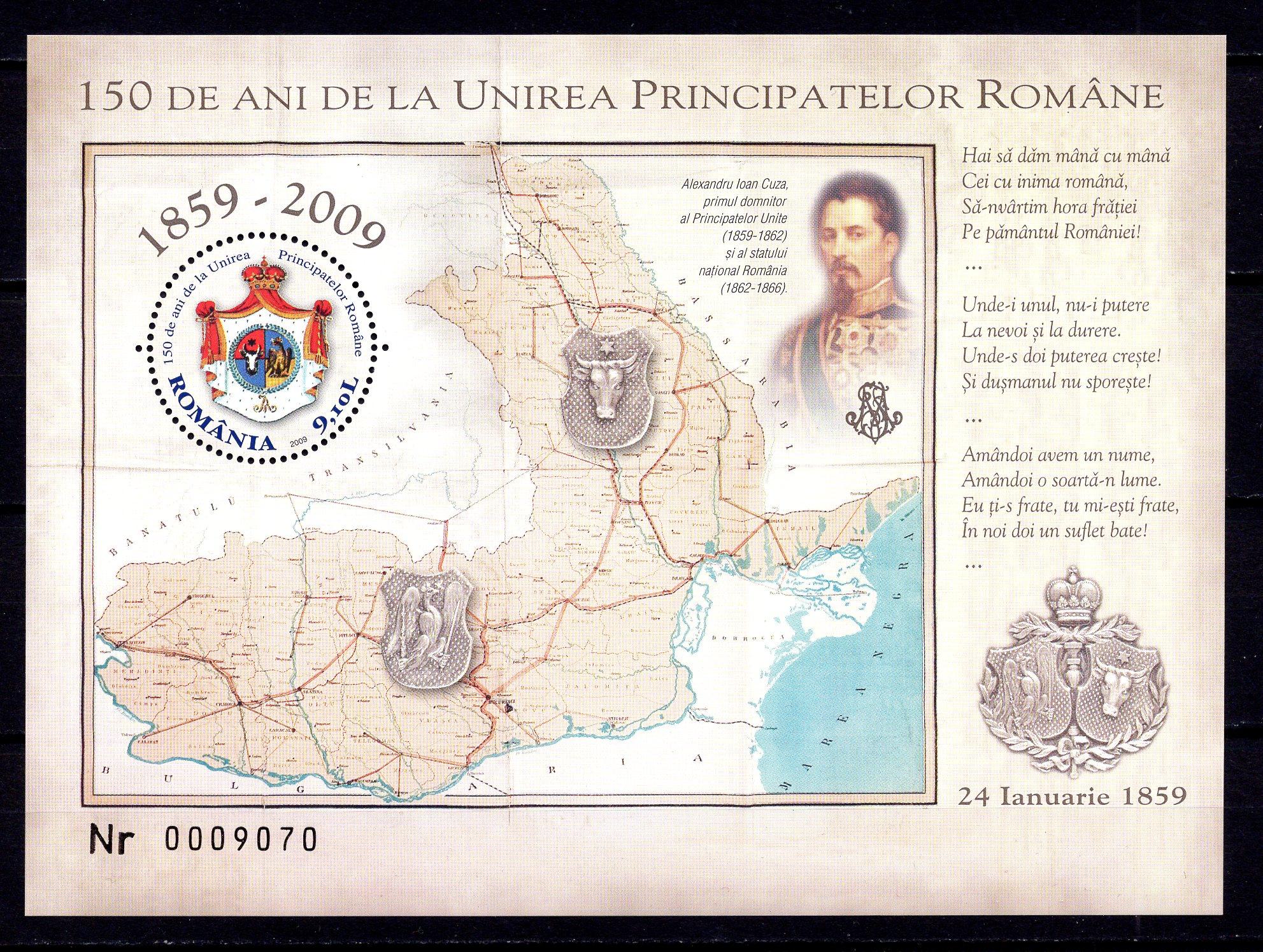 Почтовые марки. Румыния, 2009 г. 150-летие объединения княжества Молдова и Валахии. Бл 441.