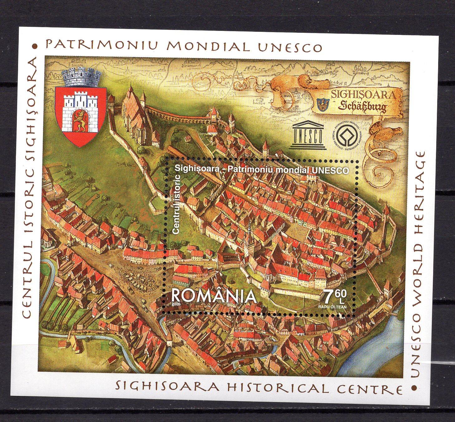 Почтовые марки. Румыния, 2001 г. Объекты всемирного наследия ЮНЕСКО: Сигишоара. Бл. 449
