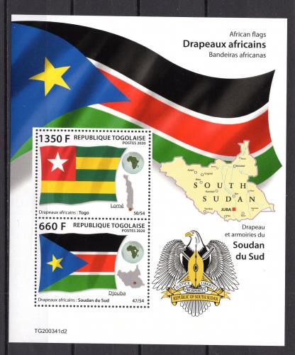 Почтовые марки. Того, 2020 г. Некатал. Африканские флаги. Южный Судан