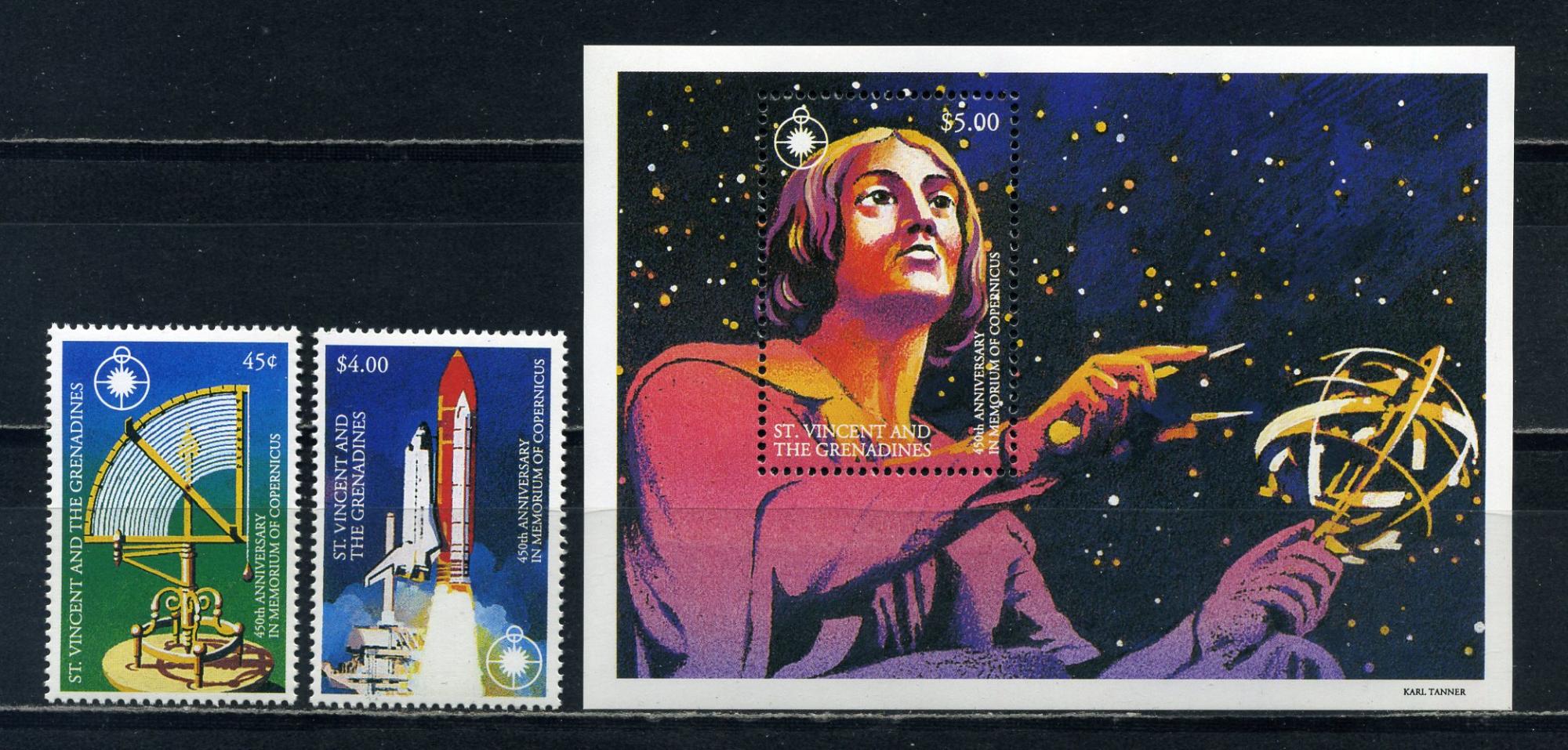 Почтовые марки. Сент-Винсент. 1993г. Космос. Коперник. №2453-2454. Блок №284.