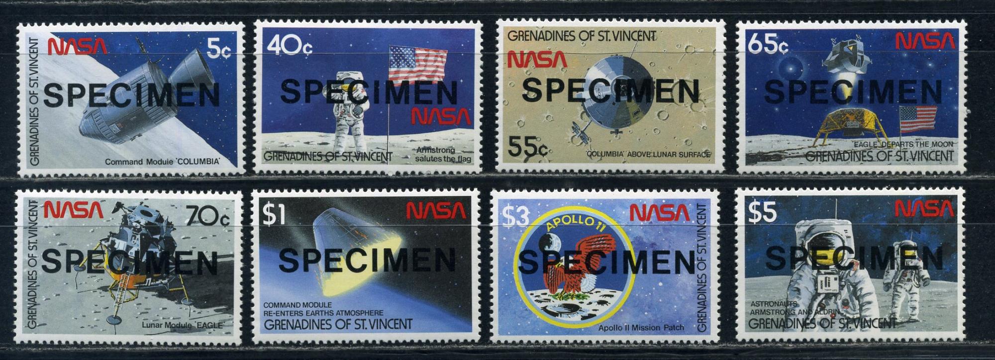 Почтовые марки. Гренадины. 1989г. Космос. Надпечатка. SPECIMEN. №654-661.