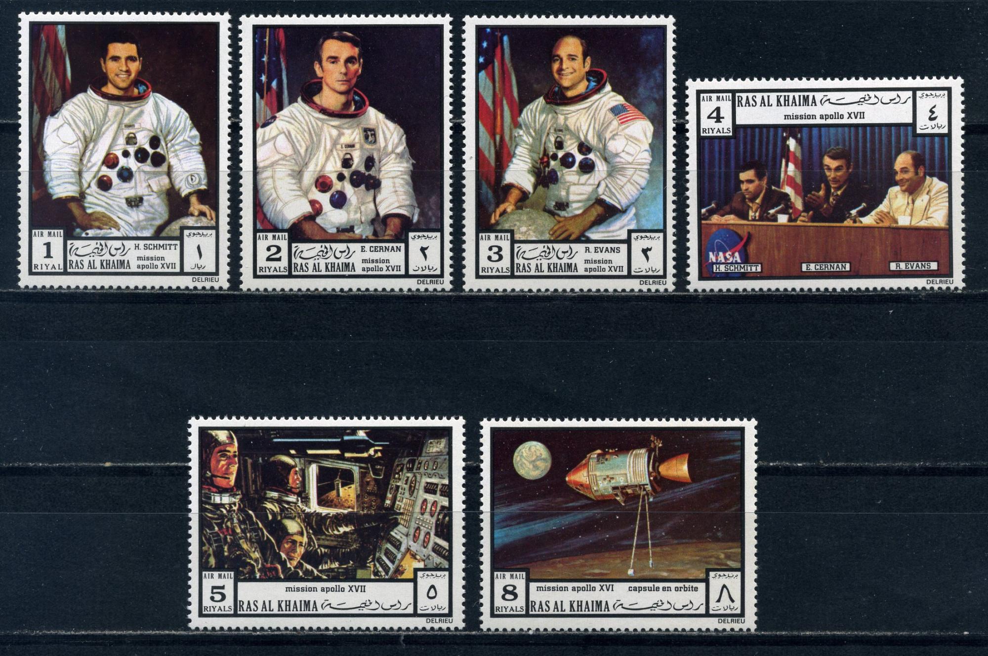 Почтовые марки. Рас-Эль-Хайма. 1972г. Космос. Астронавты. №840-845 (Mi : 18.00 евро).