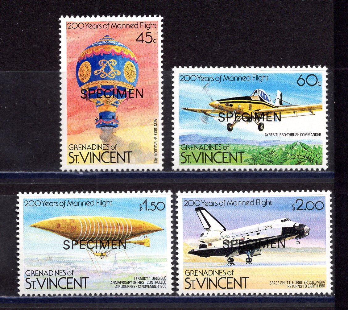 Почтовые марки. Гренадины. 1983г. SPECIMEN. 200-летие авиации. №264-267.