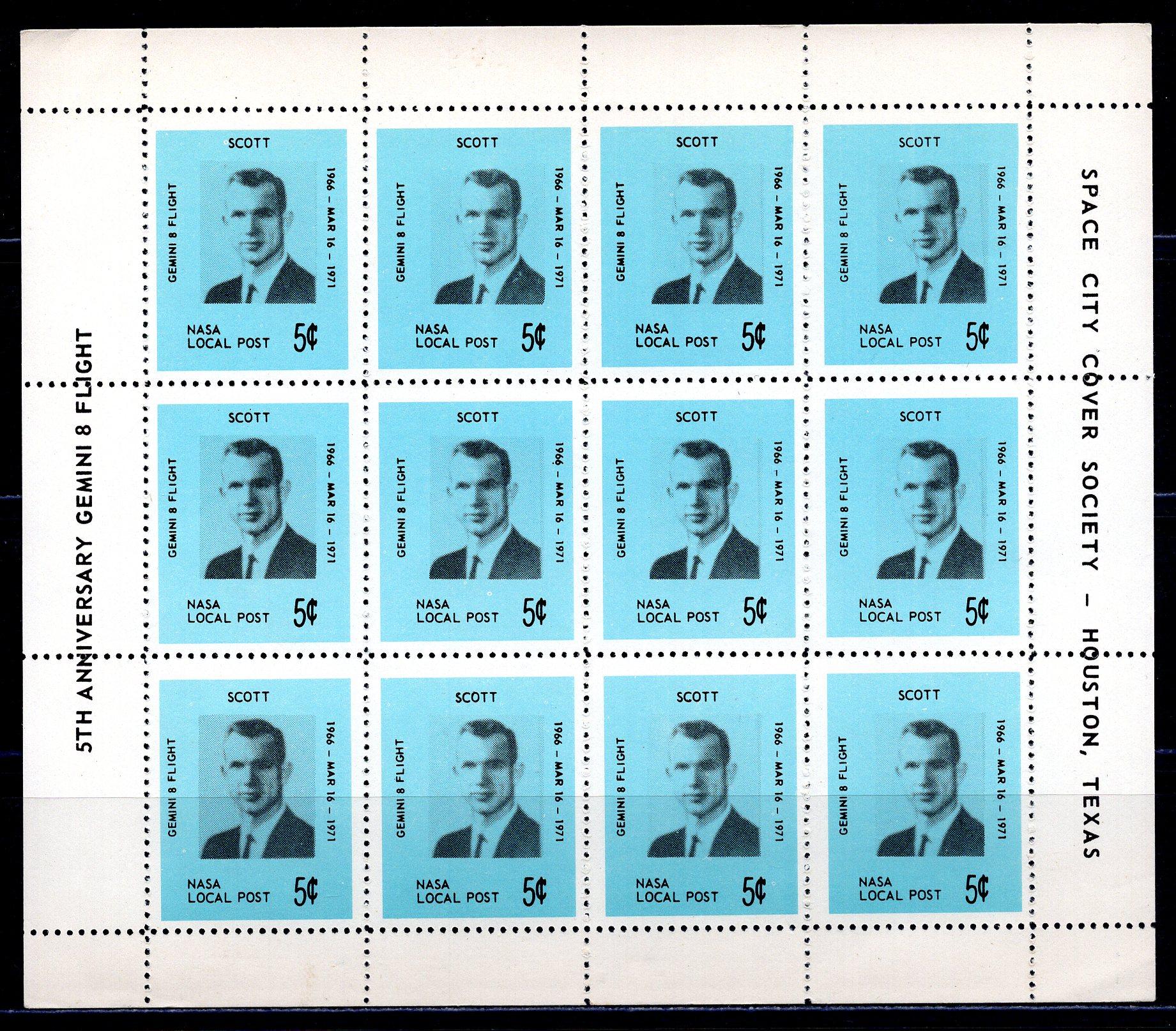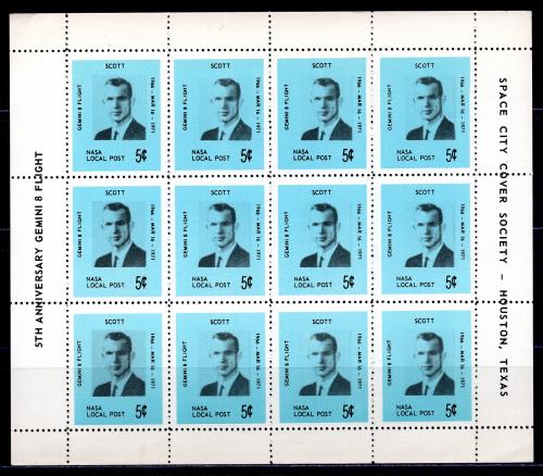 Почтовые марки. США. 1971 г. Космос. Локальная почта НАСА. Джемини-8. Лист.