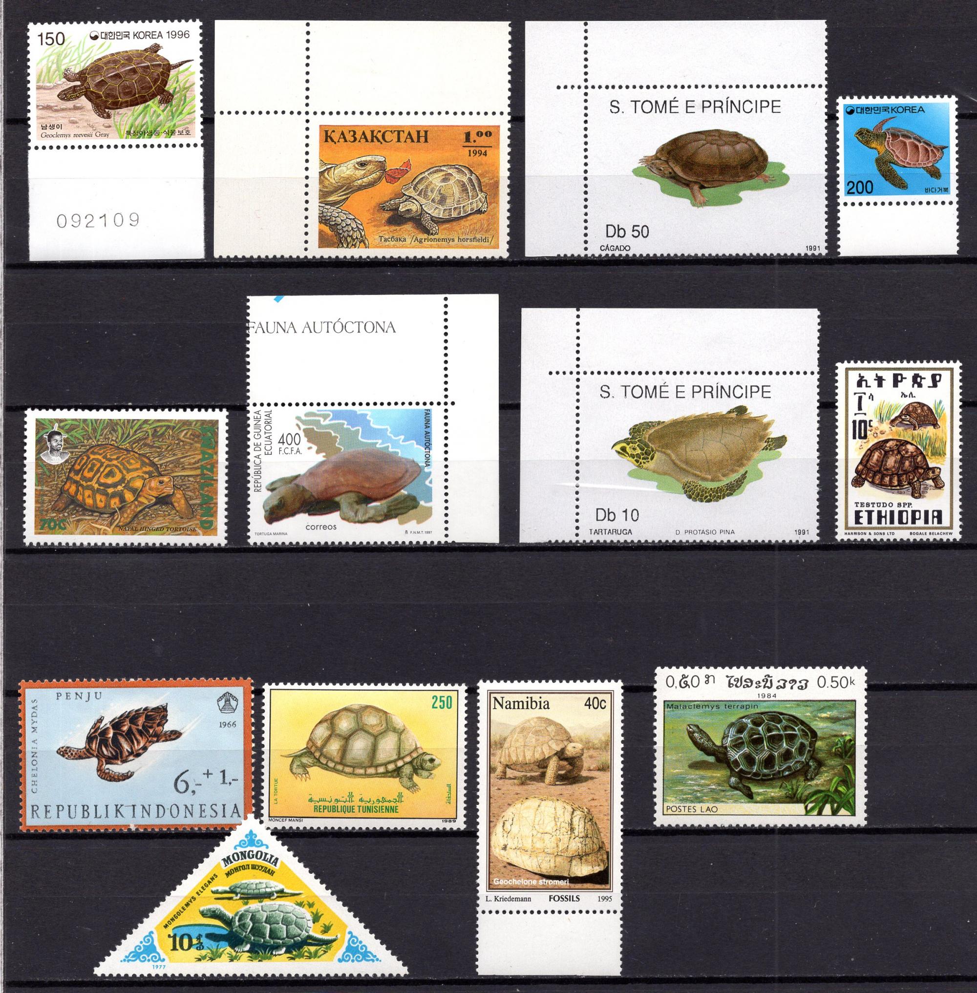 Почтовые марки. Экв. Гвинея, Индонезия, Монголия и др. 1966-1994 гг. Сборный лот. Черепахи. №1861, 1065 etc.