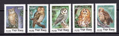 Почтовые марки. Вьетнам, 1995 г. Совы. Надпечатка. SPECIMEN. №2667-2671.