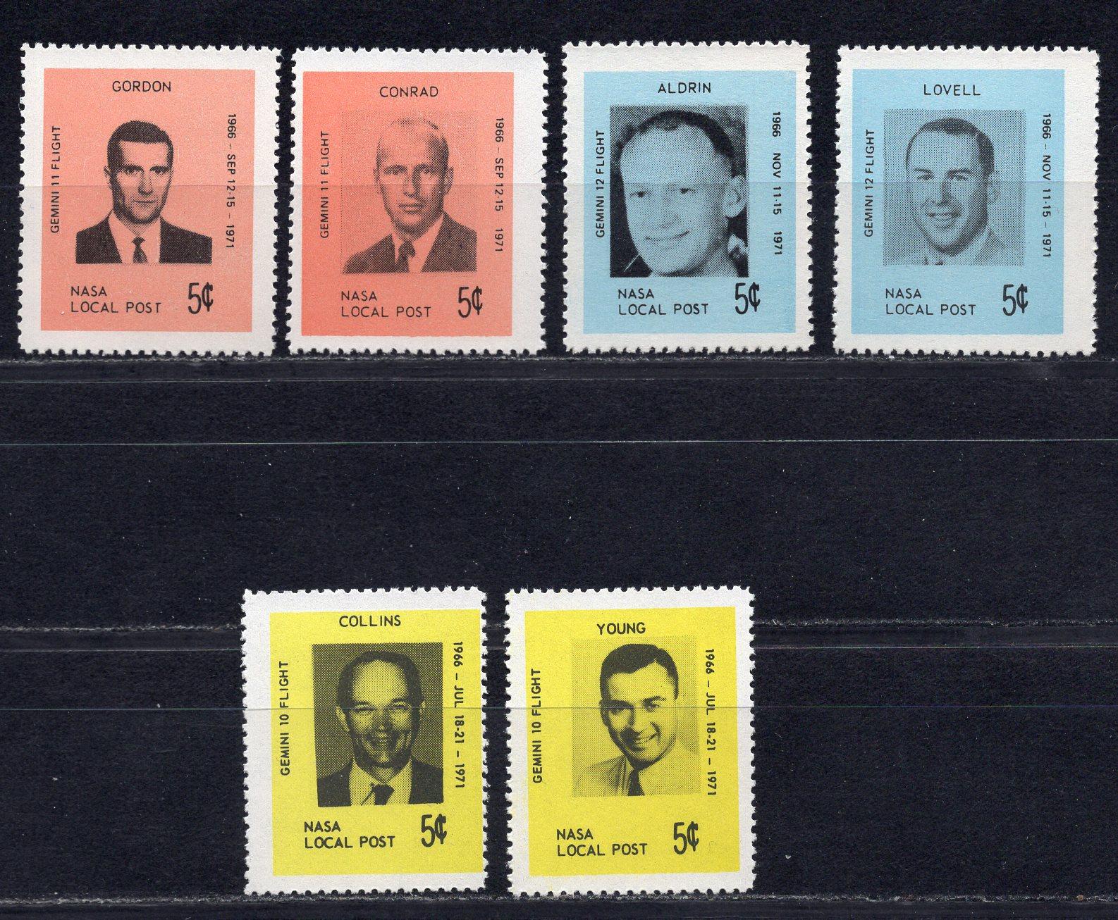 Почтовые марки. США. 1971 гг. Космос. Астронавты. Джемини-10, -11 и -12. Локальная почта НАСА.
