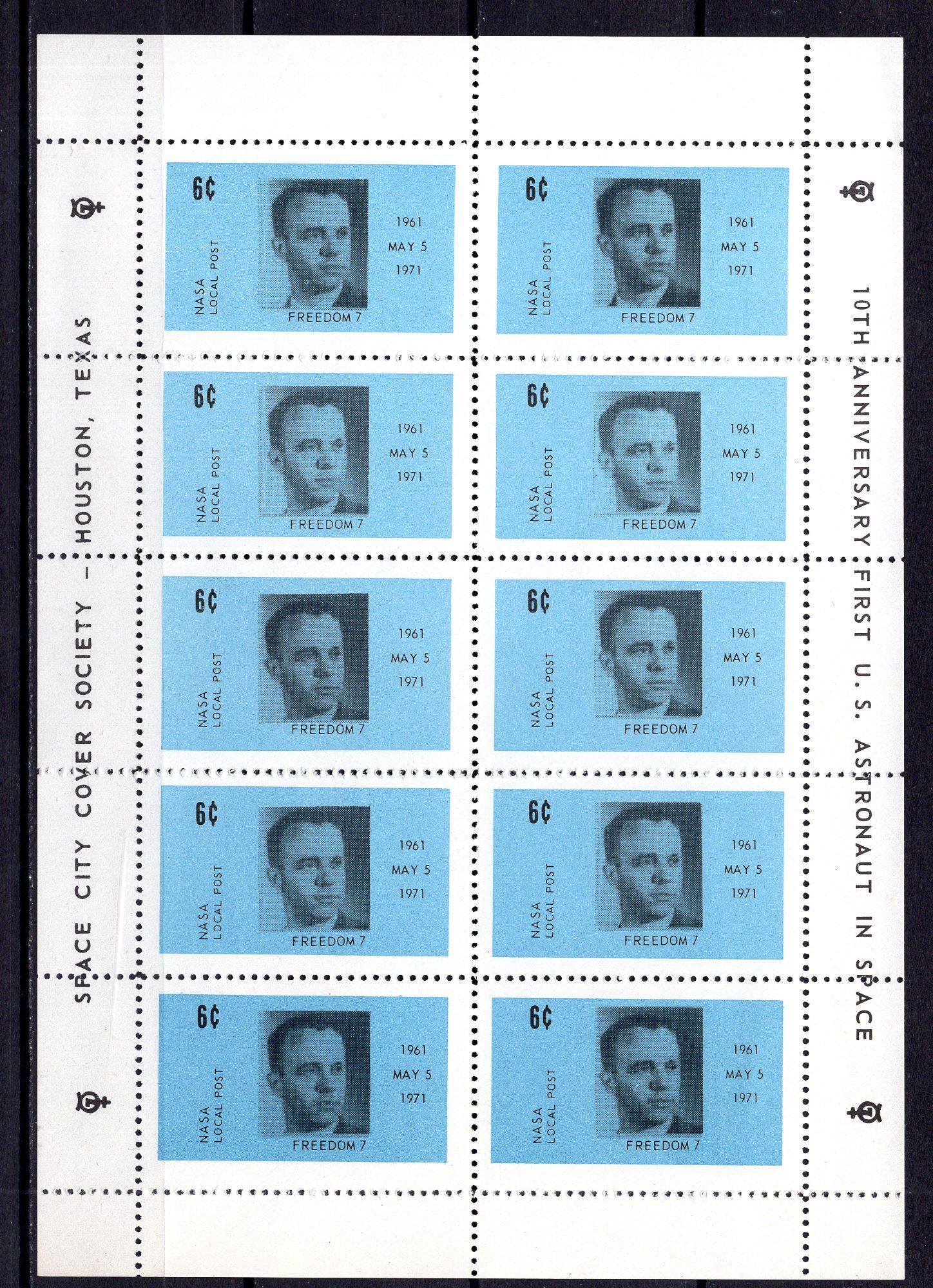 Почтовые марки. США. 1971 г. Космос. Локальная почта НАСА. Freedom - 7. Лист.