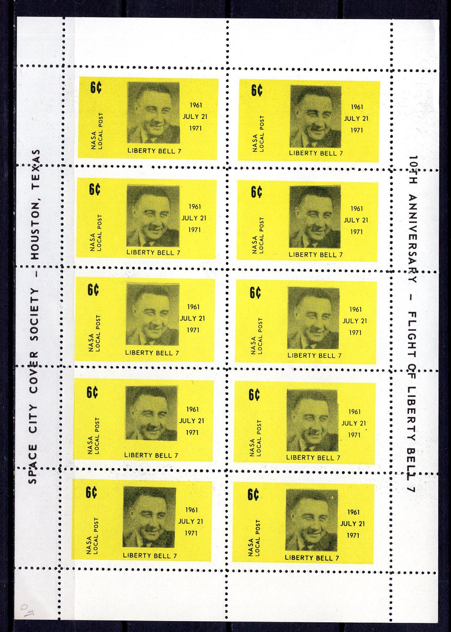 Почтовые марки. США. 1971 г. Космос. Локальная почта НАСА. Liberty-7. Лист.