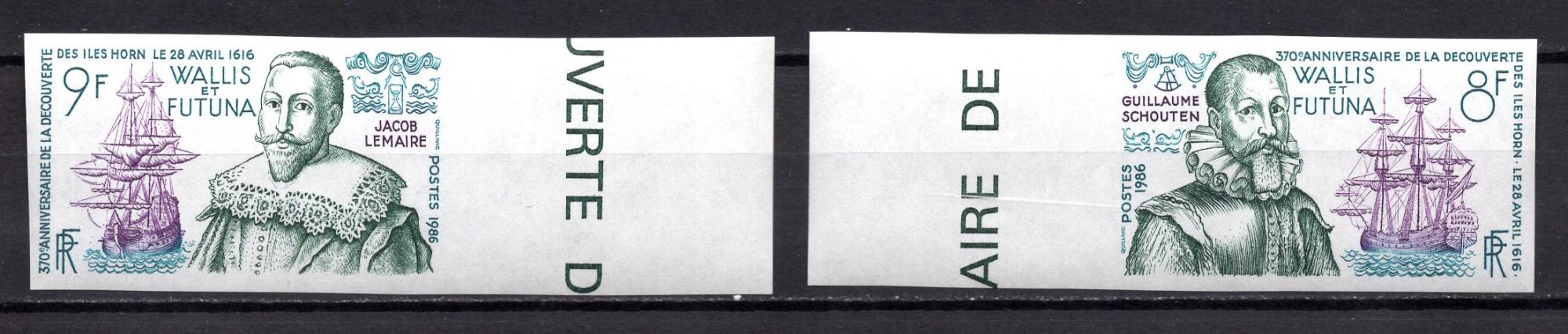 Почтовые марки. Уоллис и Футуна, 1986 г. Парусники. 370-летие открытия. БЕЗЗ. №508-509в.