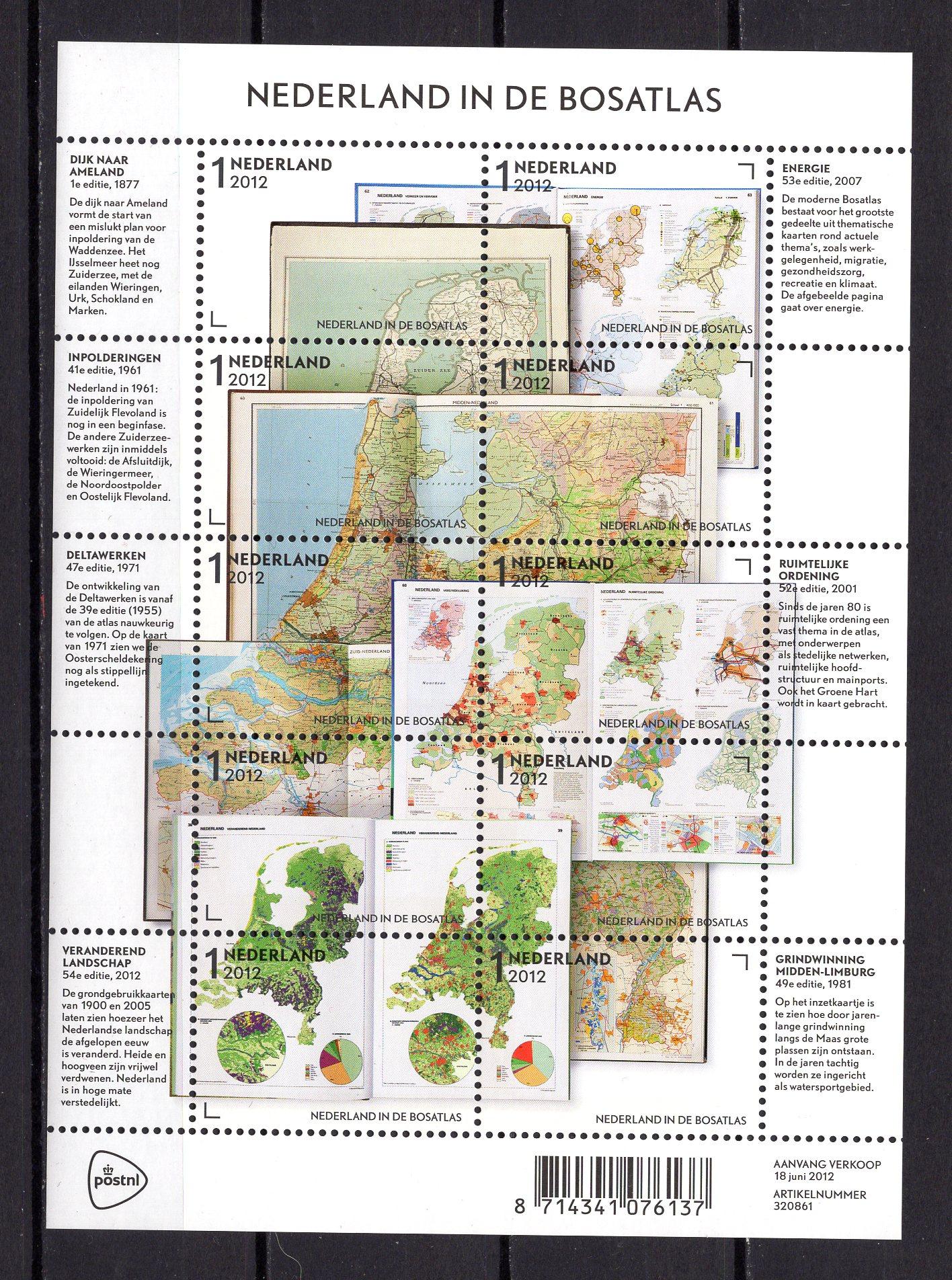 Почтовые марки. Нидерланды, 2012 г. Страна на картах. №2980-2989. (20,0 е)