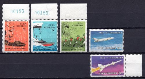 Почтовые марки. Куба, 1966 г. Революция. МиГ - 21. №1128-1132.