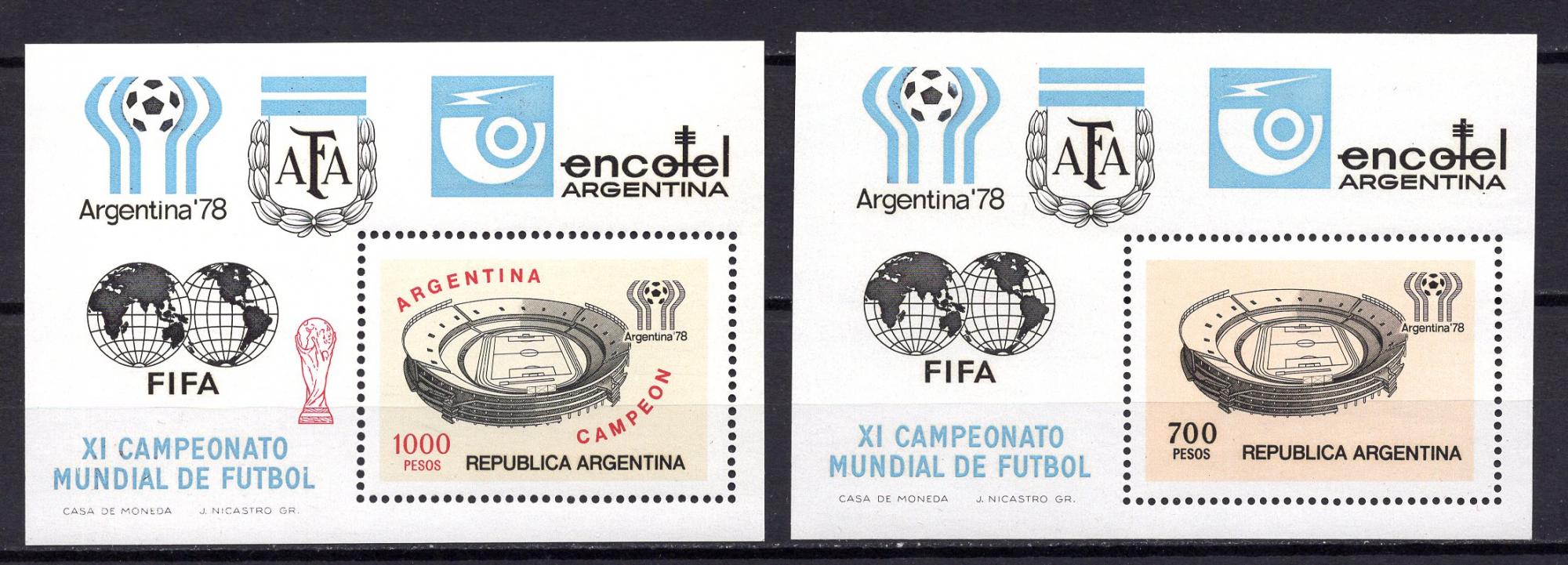 Почтовые марки. Аргентина, 1978 г. Футбол. Надпечатка. Бл. 20-21.