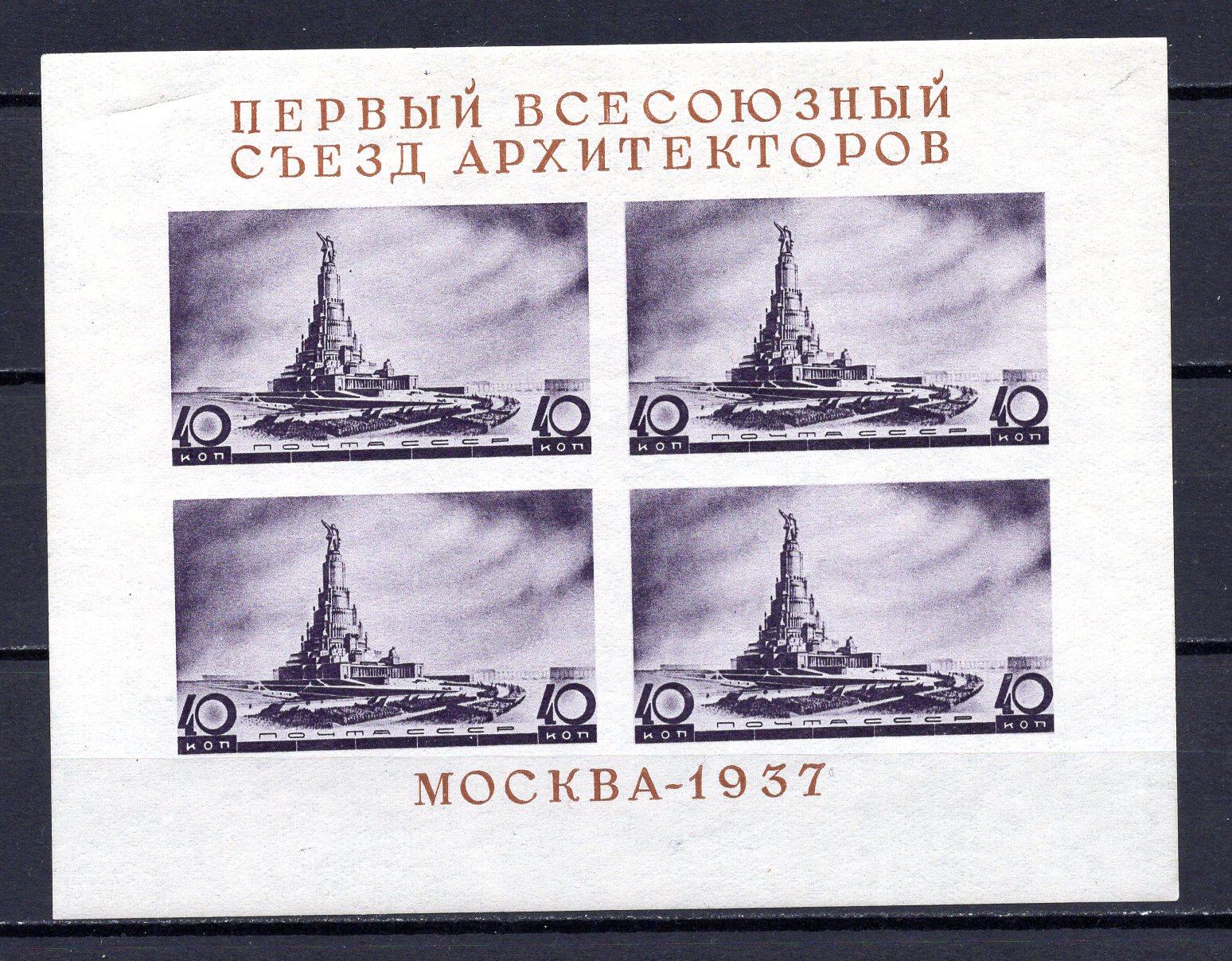 Почтовые марки. СССР, 1937 г. Съезд архитекторов. №551. (См. сост.)