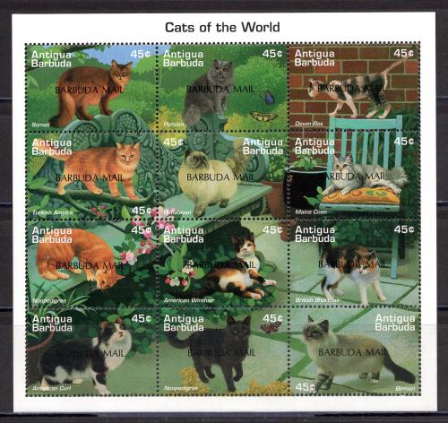 Почтовые марки. Барбуда. 1997г. Кошки. Надпеч. МЛ. №1908-1919.