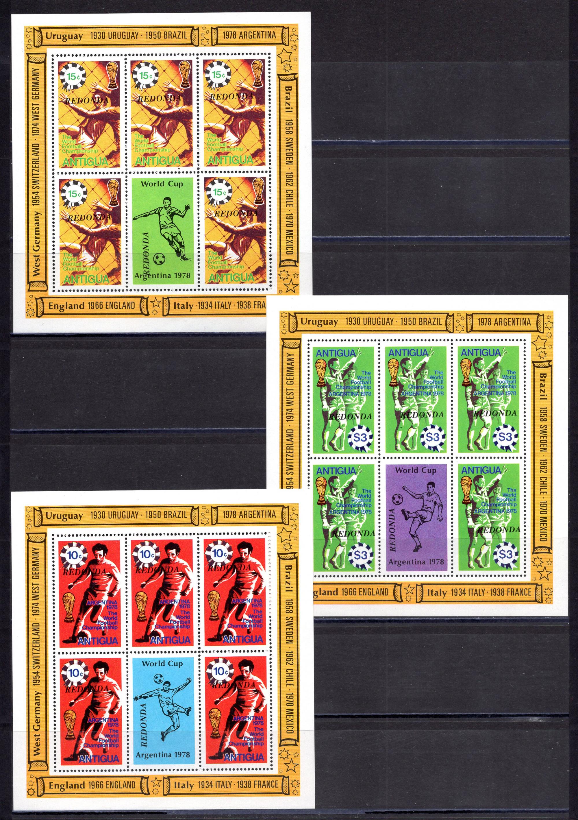 Почтовые марки. Редонда. 1979г. Футбол. Надпеч. МЛ. №18-20.