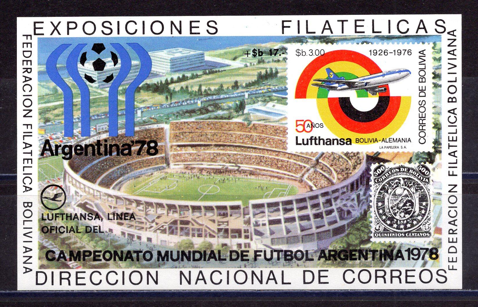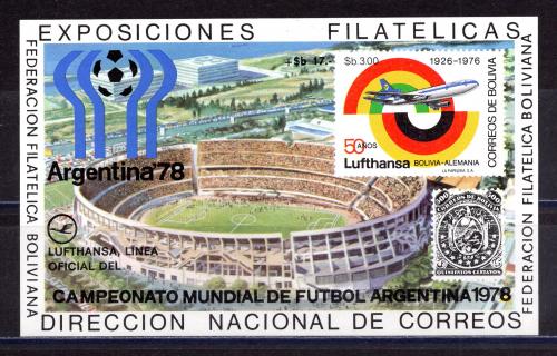Почтовые марки. Боливия. 1978г. Футбол. Авиация. Блок №79.