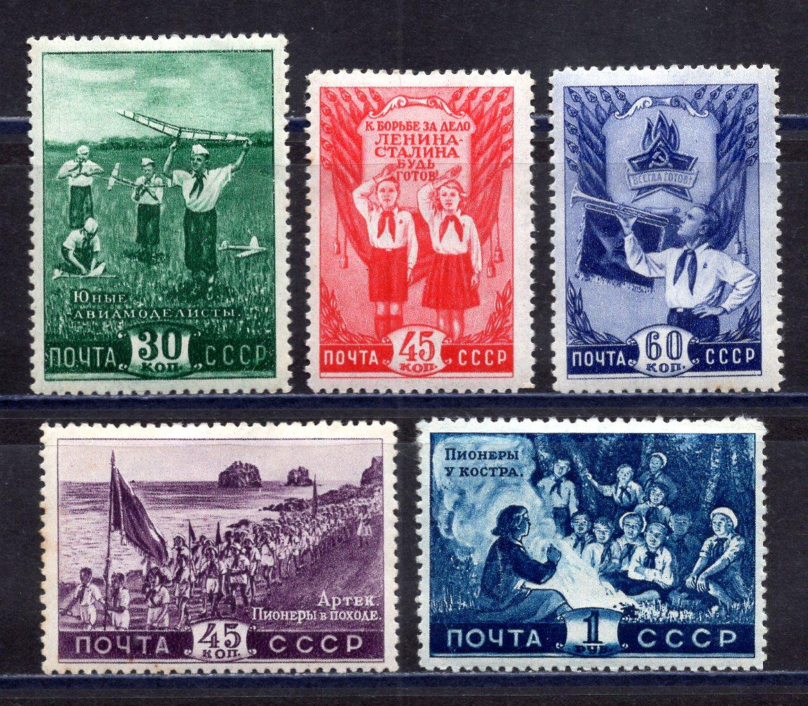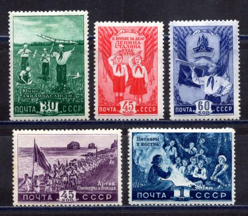 Почтовые марки. СССР. 1948г. Пионеры. №1317-1321. (См.сост.)
