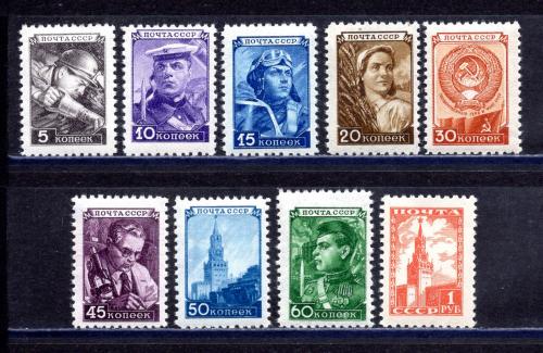 Почтовые марки. СССР. 1948г. Стандарт. №1247-1254, №1255Б.