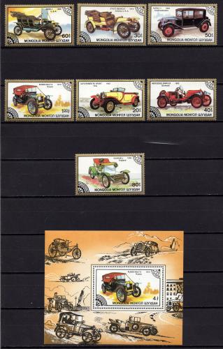 Почтовые марки. Монголия, 1986 г. Старые авто. №1827-1833, Бл. 116