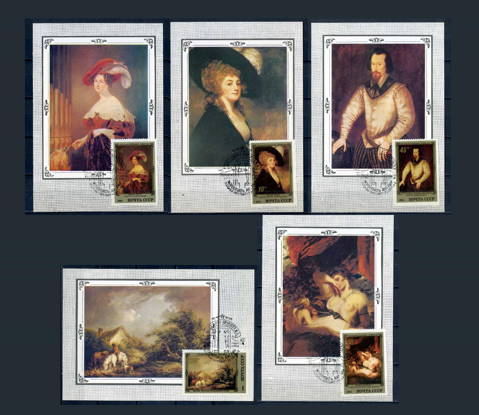 Картмаксимум. СССР 1984 г. Эрмитаж. Живопись Англии. Комплект.