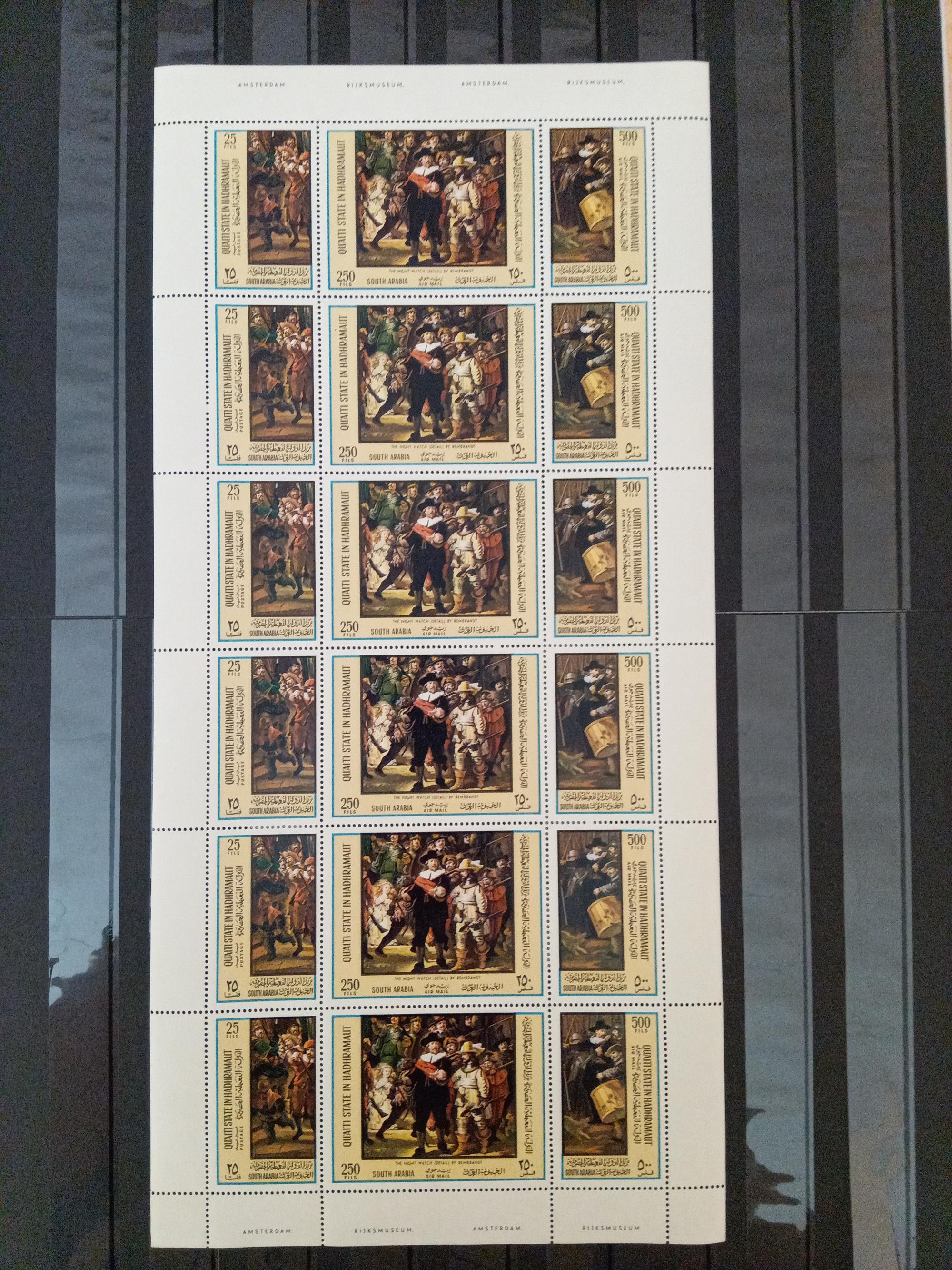 Почтовые марки. Аден. Qu'aiti St. 1967. Рембрандт. № 165-167. Лист.
