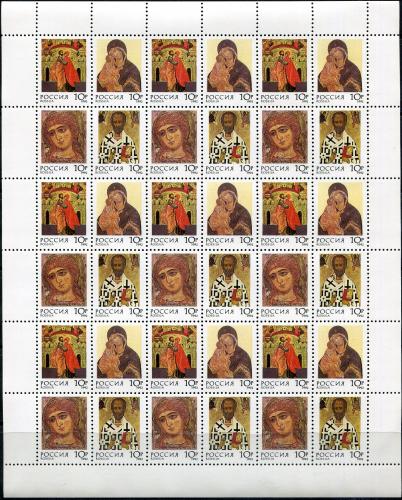 Почтовые марки. Россия. 1992г. Иконы. Совм. выпуск. Лист. №54-57.
