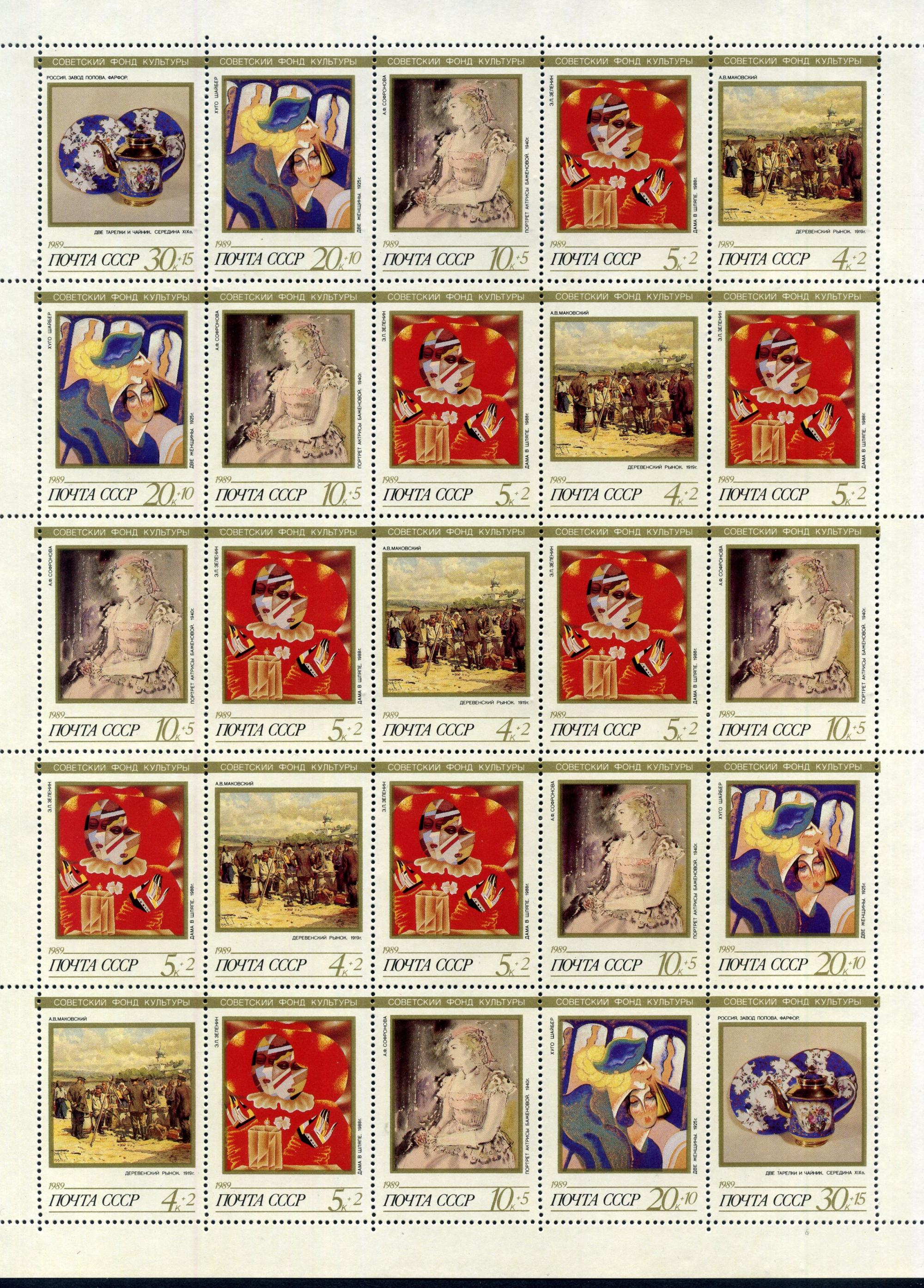 Почтовые марки. СССР. 1989г. Современное искусство. №6122-6126. Лист. Комби.