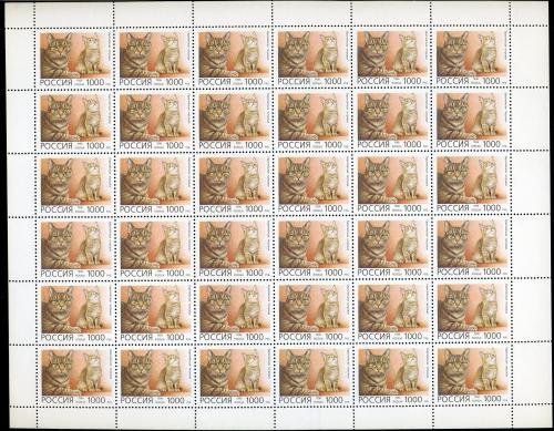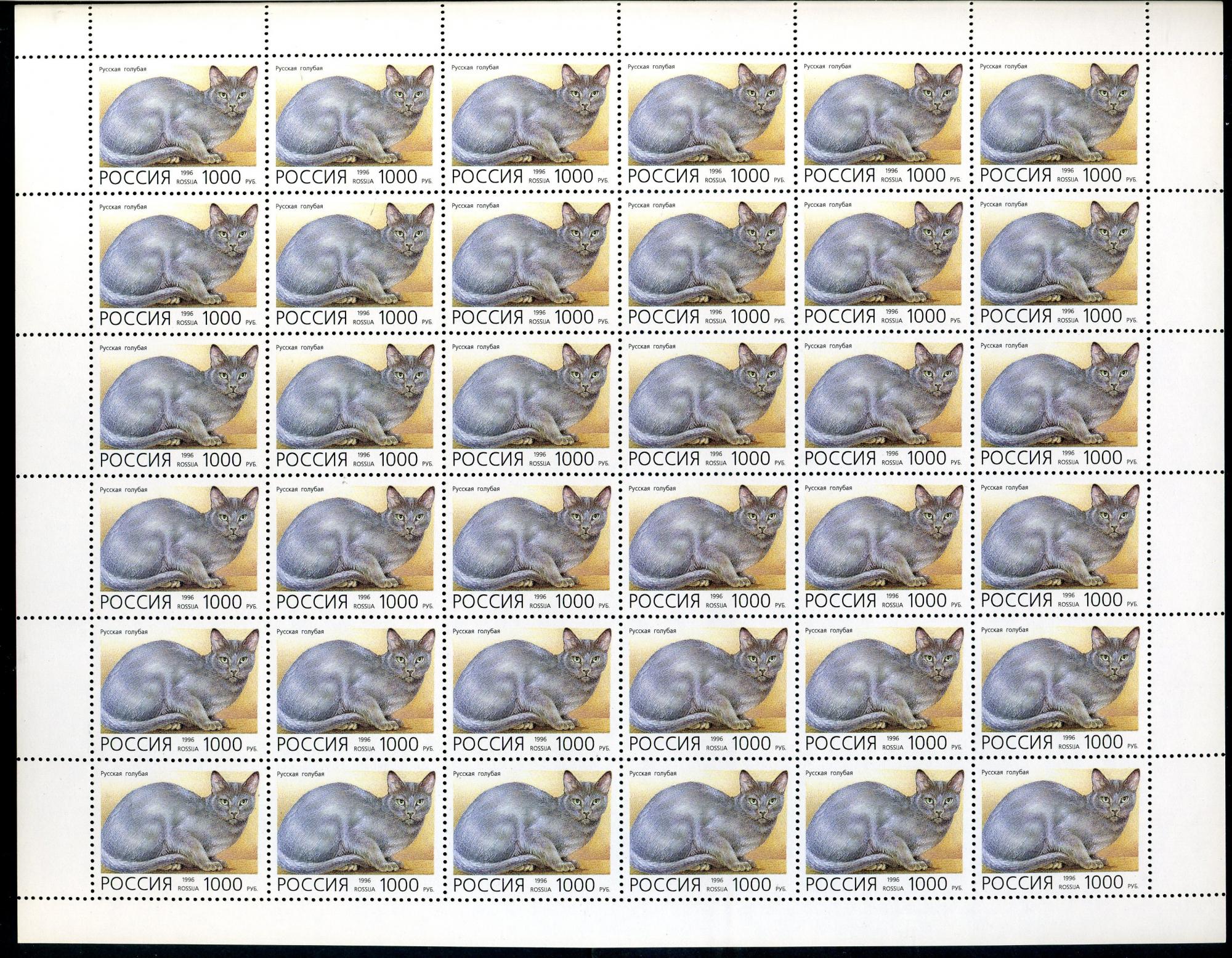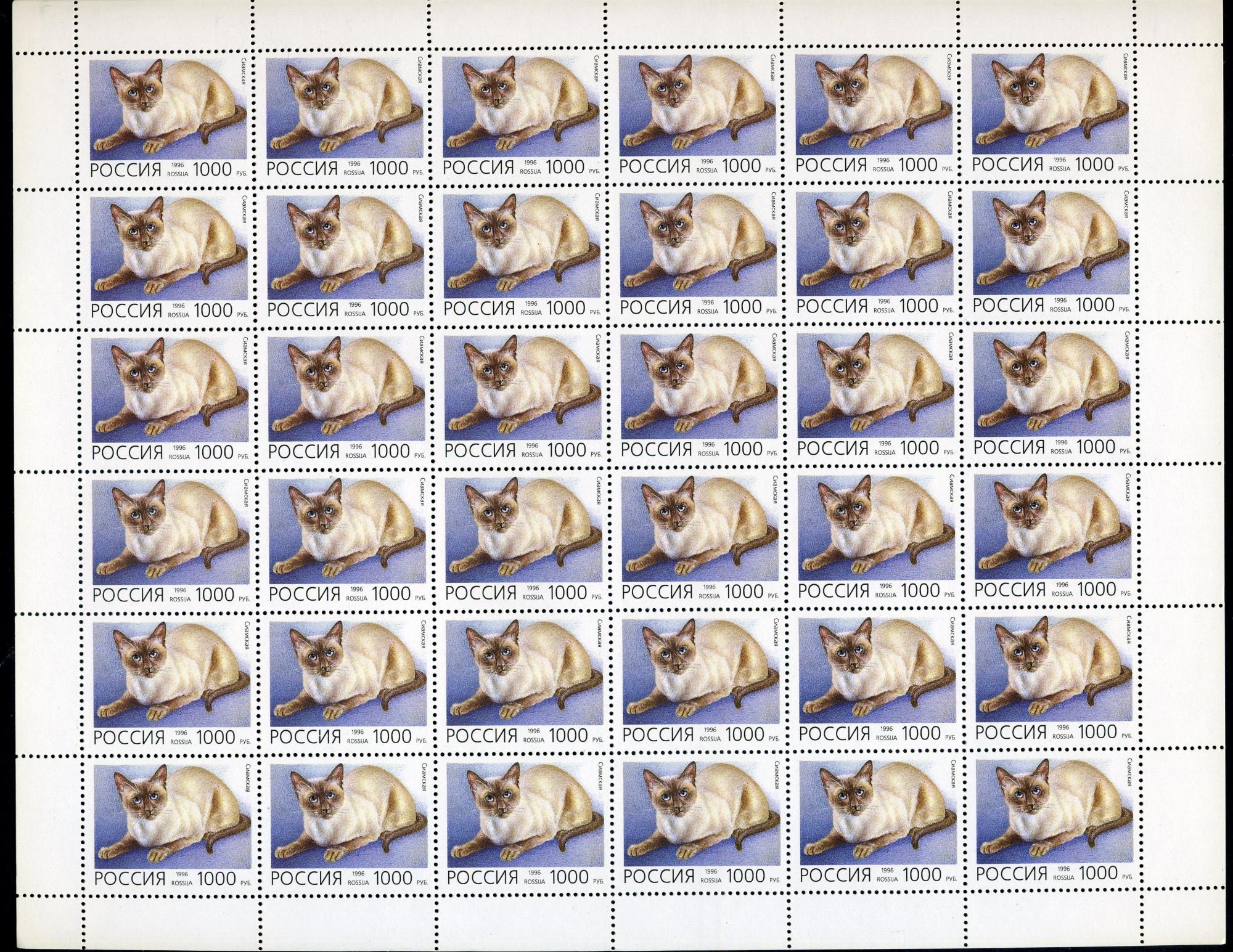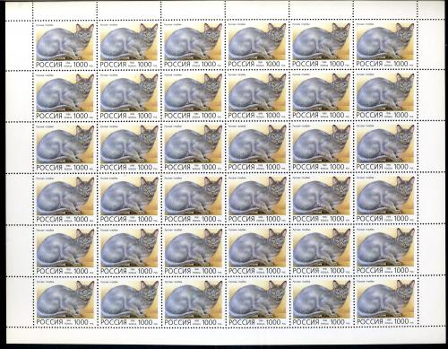 Почтовые марки. Россия 1996 г. Домашние кошки. № 266-270. 5 листов.