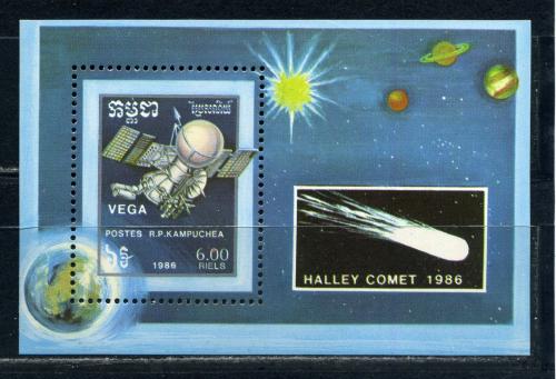 Почтовые марки. Кампучия. 1986г. Космос. Комета. Блок №148.