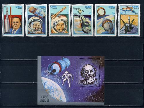 Почтовые марки. Куба. 1986г. Космос. Гагарин. №3005-3010. Блок №94.