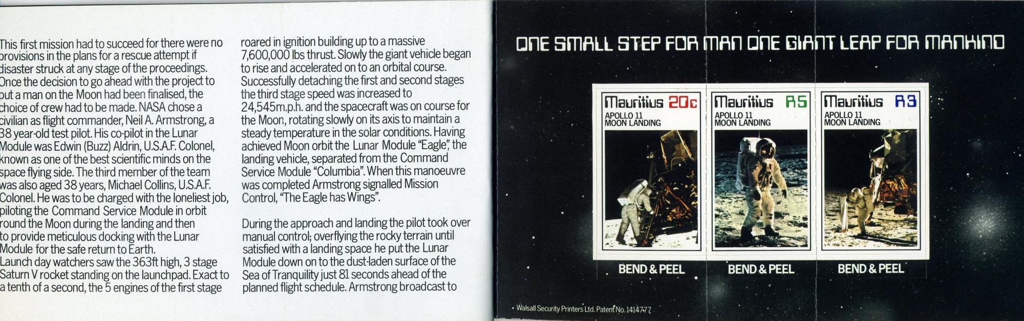 Буклет. Маврикий 1979г. Космос. Аполлон-11. № 477-479.