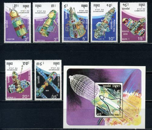 Почтовые марки. Камбоджа. 1990г. Космос. №1177-1183. Блок №179 (Mi: 16.00 Евро).
