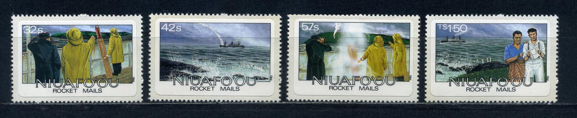 Почтовые марки. Ниуафо'оу. 1985г. Ракетная почта. Корабль. Самоклейки. №61-64 (Mi: 12.50 Евро).