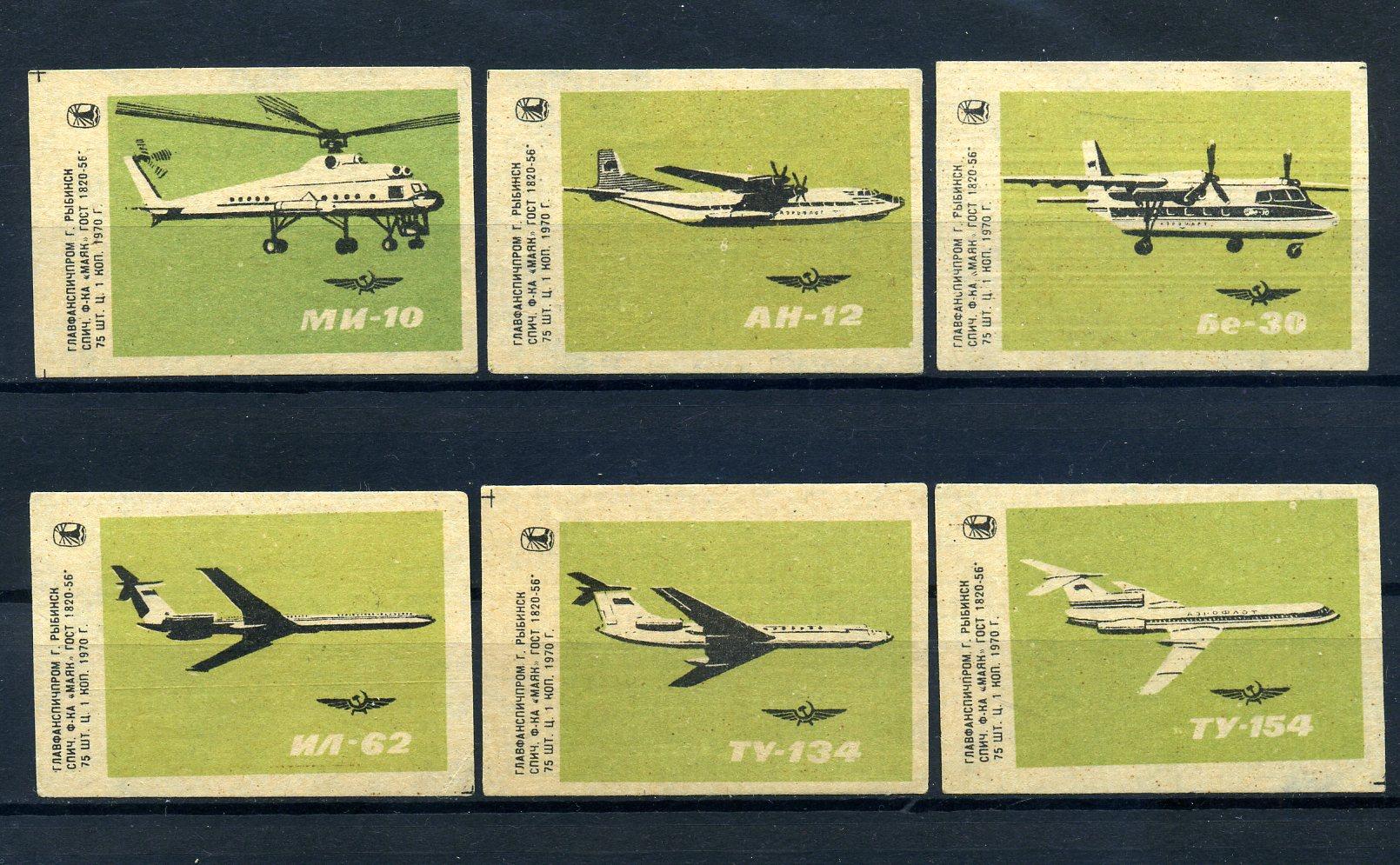 Спичечные этикетки. СССР. 1970 г. спич. фабрика Маяк, г. Рыбинск. Авиация.