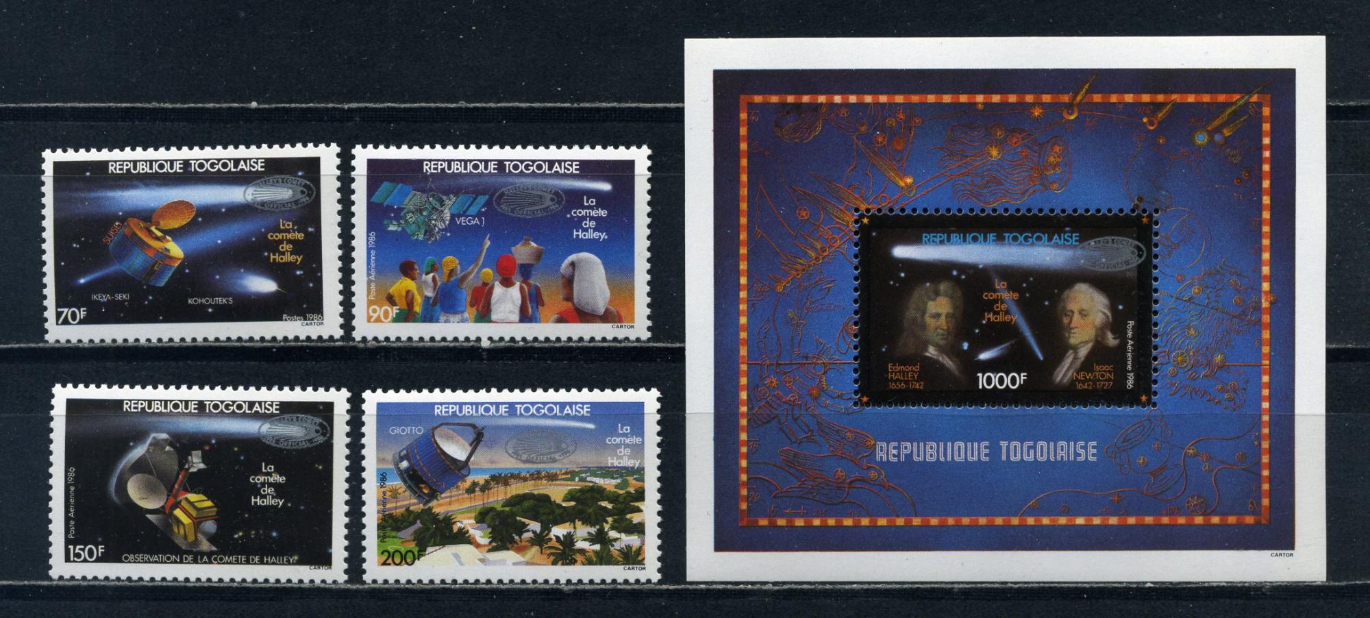 Почтовые марки. Того. 1986г. Космос. Комета. Надпечатка. №1990-1993. Блок №291 (Mi: 38.00 Евро).