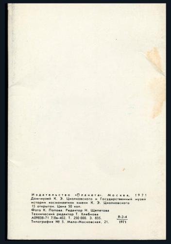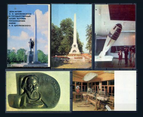 Комплект открыток. СССР 1971 г. Дом-музей К.Э.Циолковского и Гос.музей истории космонавтики им. К.Э.Циолковского. 15 открыток (полный).