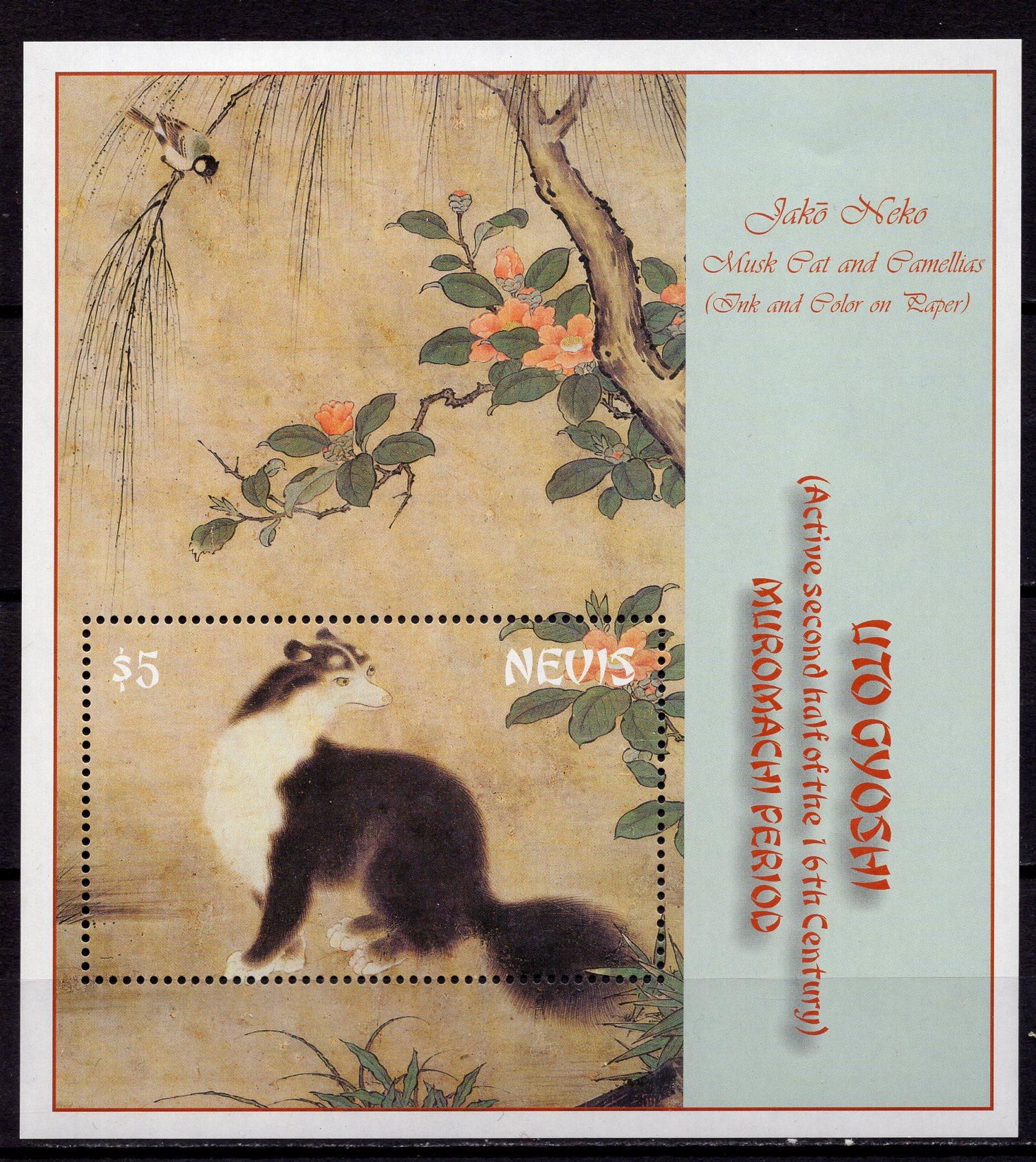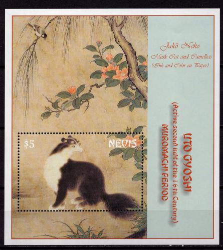 Почтовые марки. О. Невис, 2002 г. Кошки. Бл. 216.