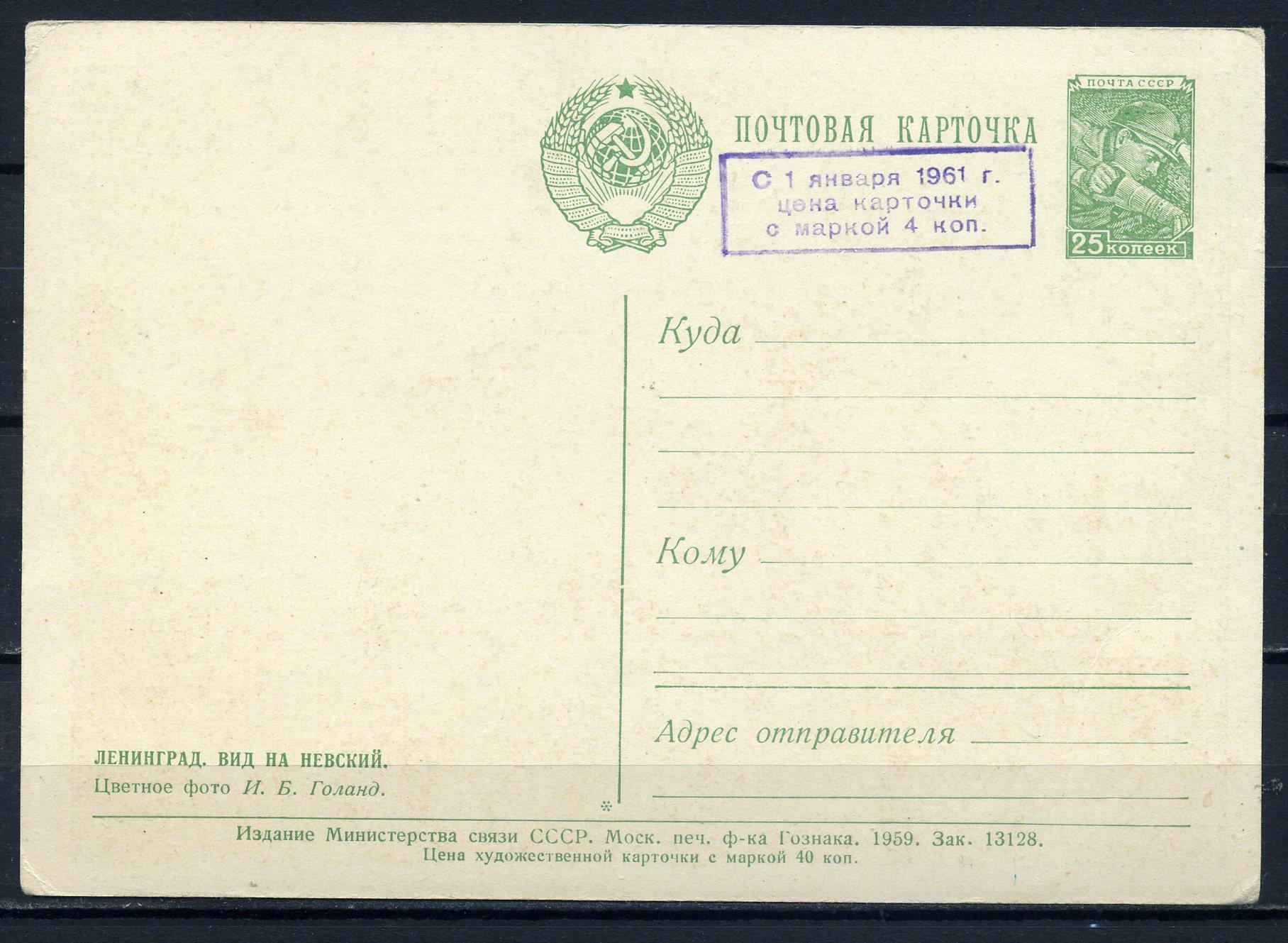 Почтовая карточка. СССР 1959 г. Ленинград. Невский пр.