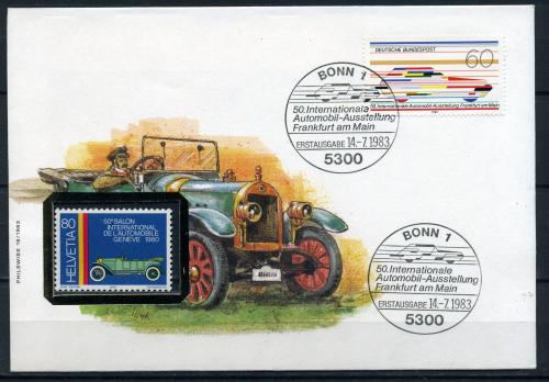 Конверт с маркой и СГ. Швейцария 1980 г. СГ - 1983 г. Международная автомобильная выставка.