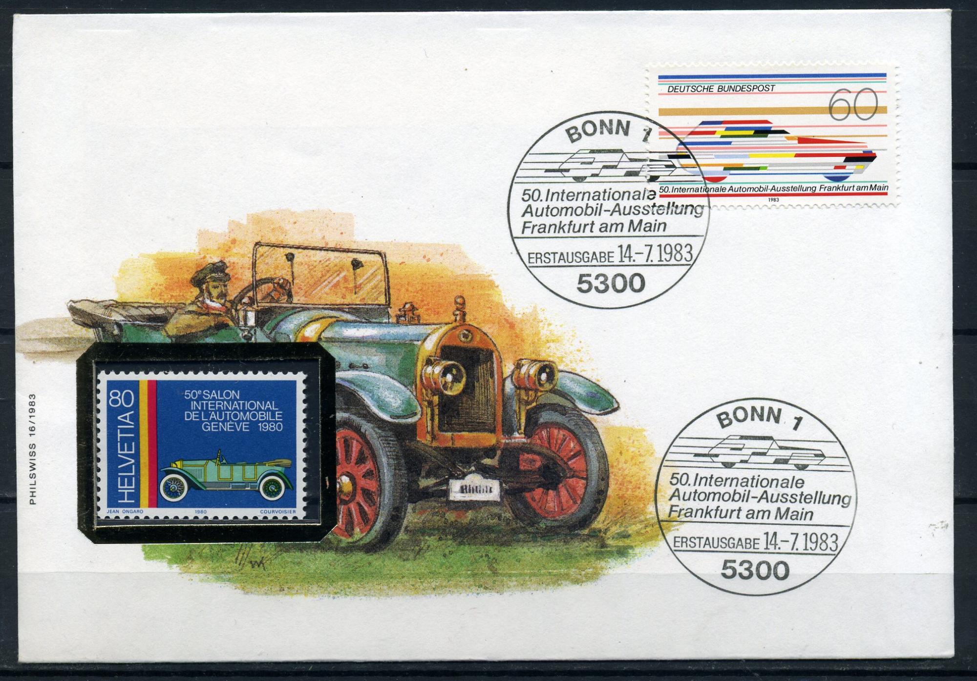 Конверт с маркой и СГ. Швейцария 1980 г. СГ - 1983 г. Международная автомобильная выставка.