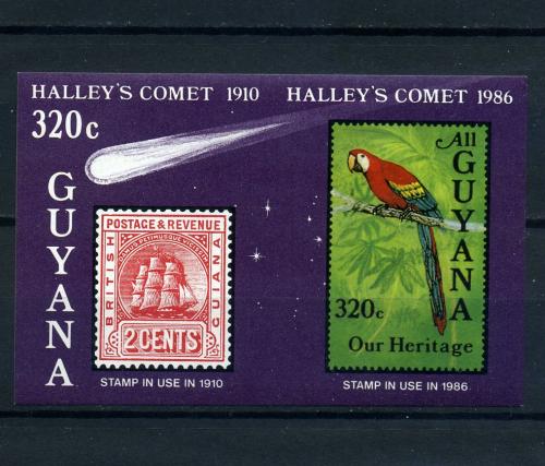 Почтовые марки. Гайана. 1986. Блок №13в. Беззубц. Космос. Комета Галлея.