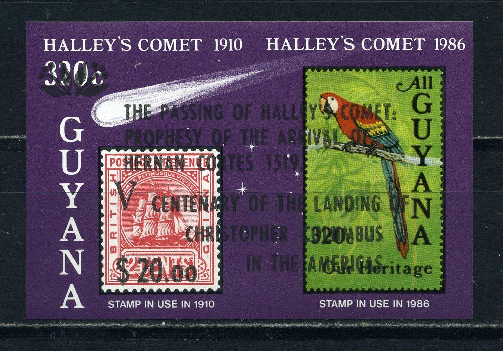 Почтовые марки. Гайана. 1987г. Космос. Комета. Надпечатка "5-я годовщина". Беззубц. Блок №18в. Беззубц. (Mi: 15.00 Евро).