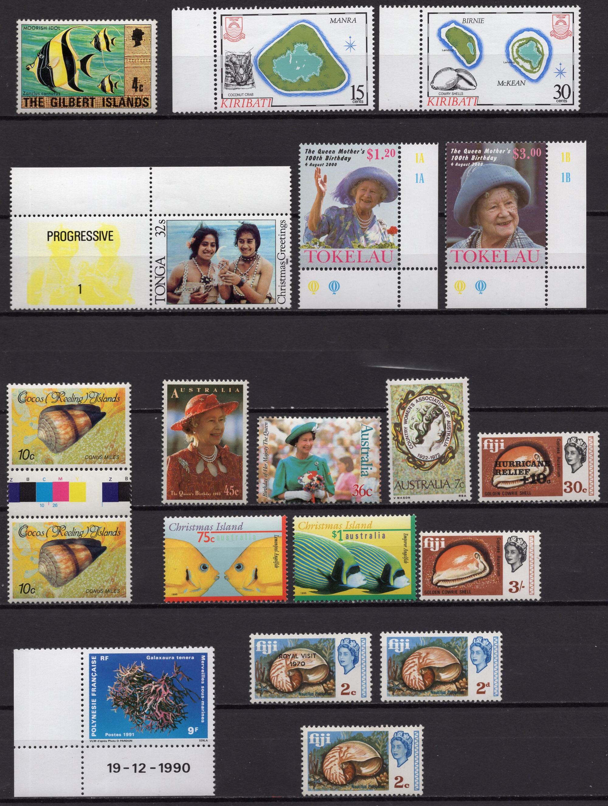 Почтовые марки. Фиджи, Токелау, Кирибати etc. 1988-1993. QII, Рыбы. Ракушки.